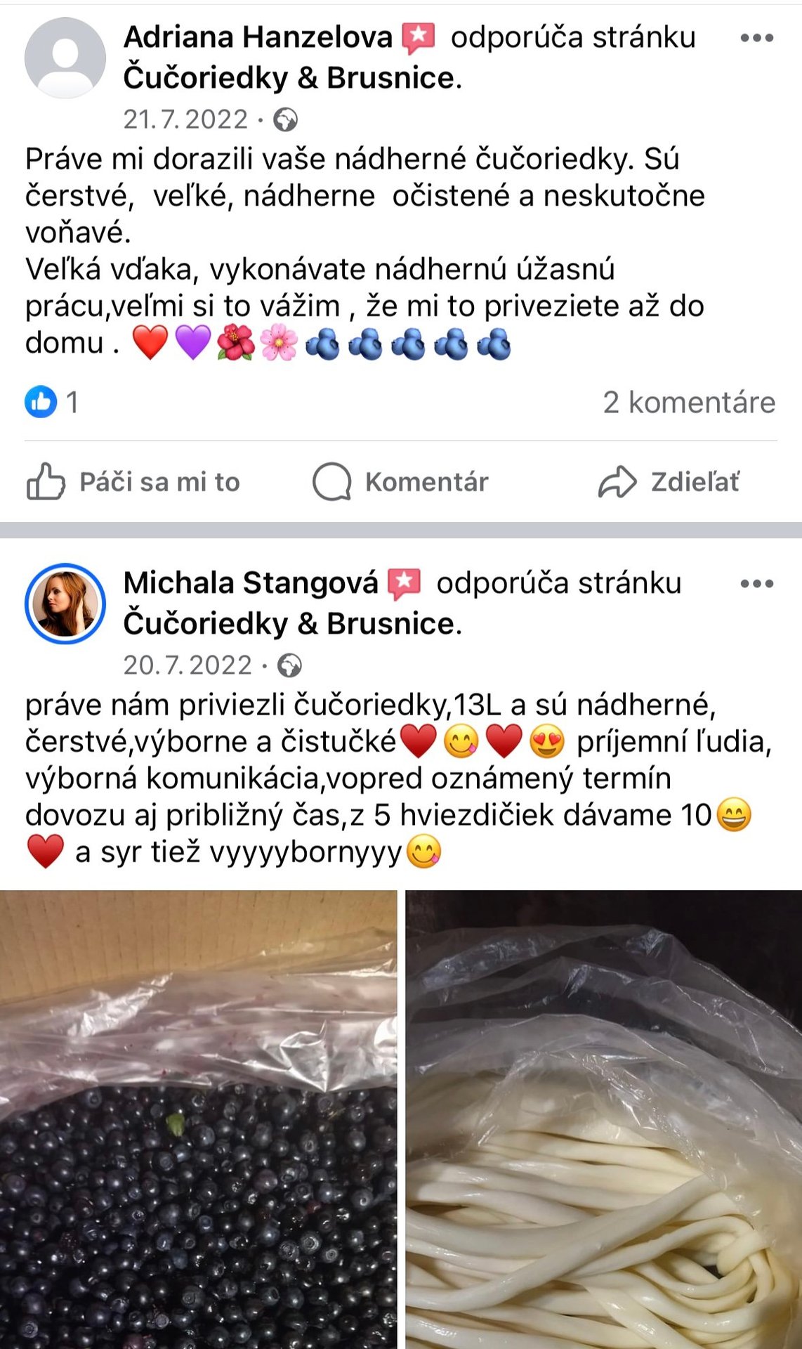 ❤️Naše čučoriedky a brusnice dodávame vždy čerstvé a ručne čistené.